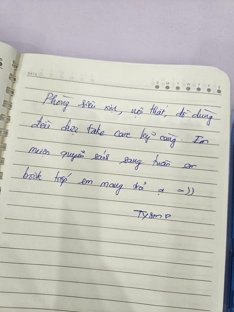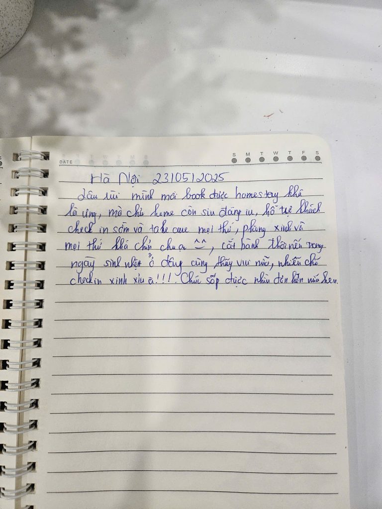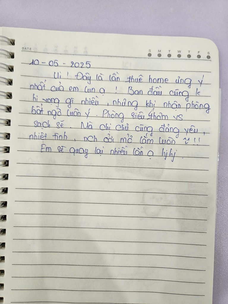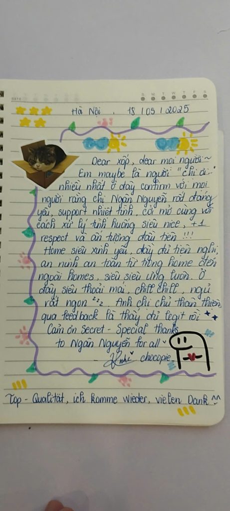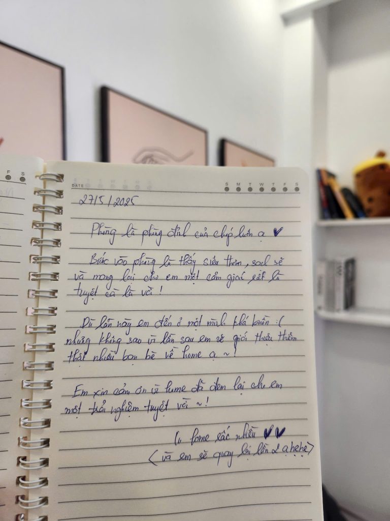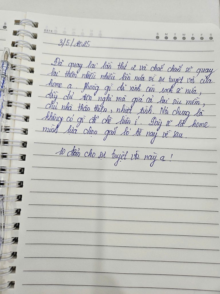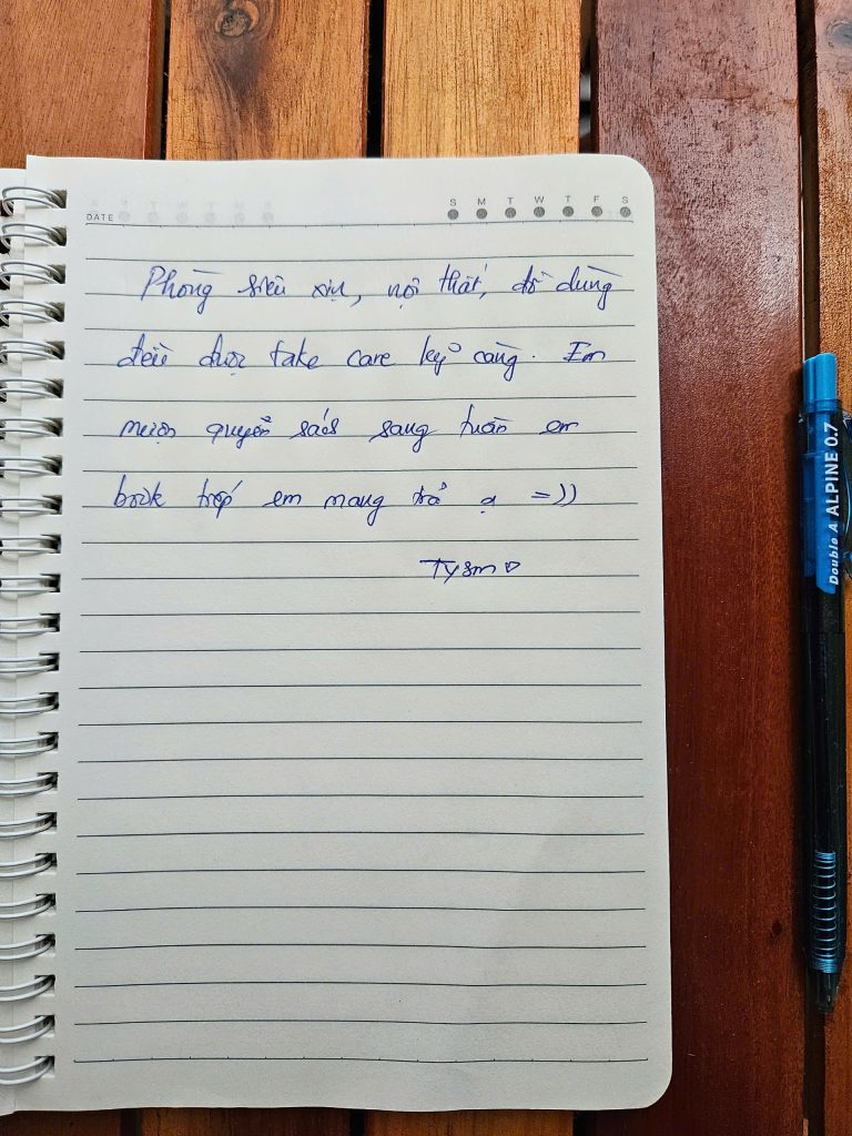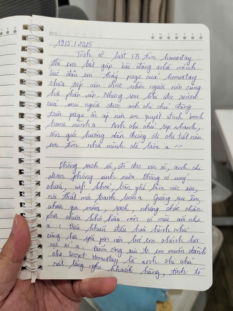 Mình biết để được một người nán lại và nắn nót viết từng dòng như thế này là không hề dễ dàng. Điều đó khiến team mình luôn cố gắng đễ mãi mãi giữ phong độ, giữ sự chỉn chu để lần nào các bạn quay lại Secret Homestay cũng sẽ là một lần “wow”. 🥰