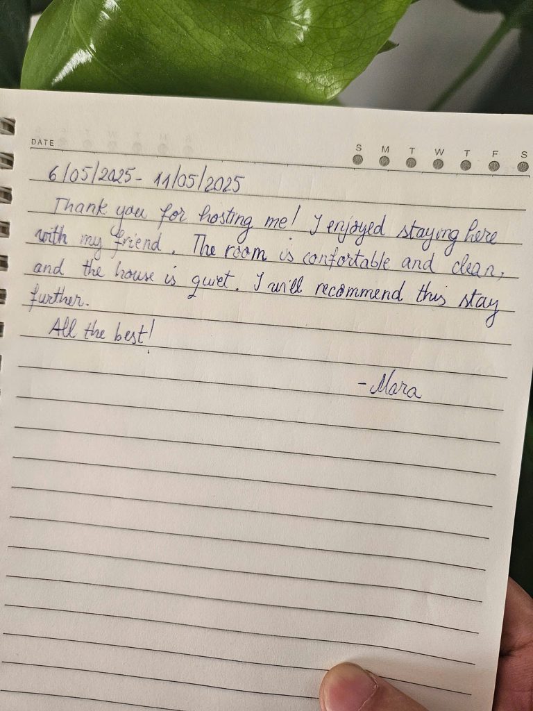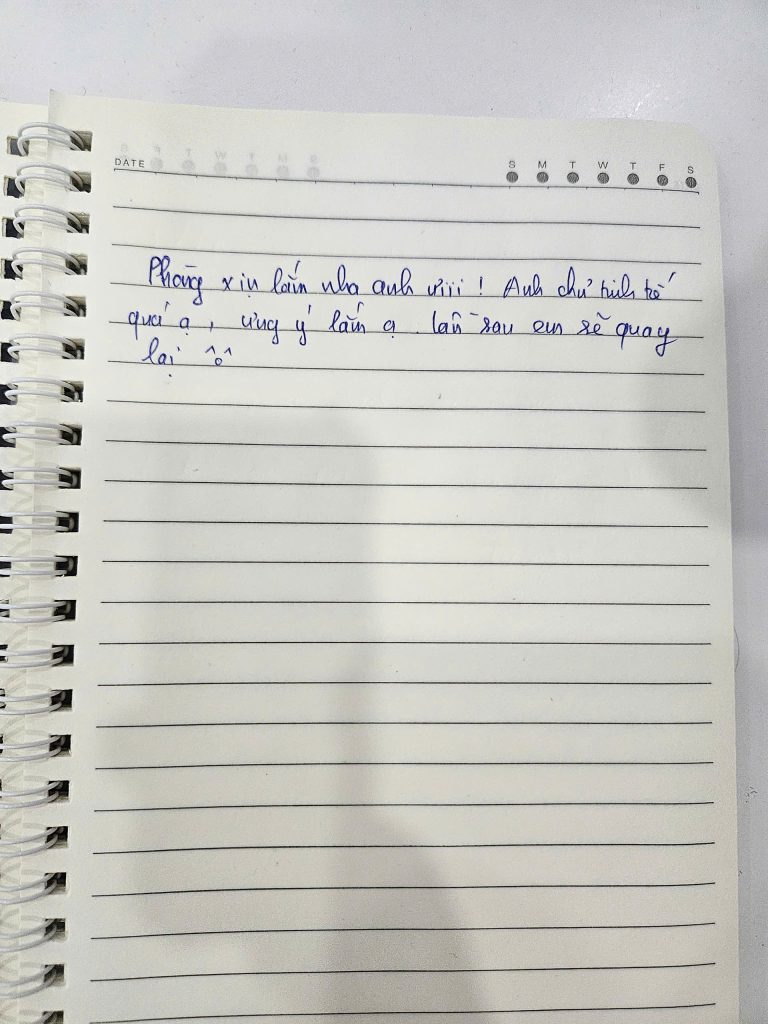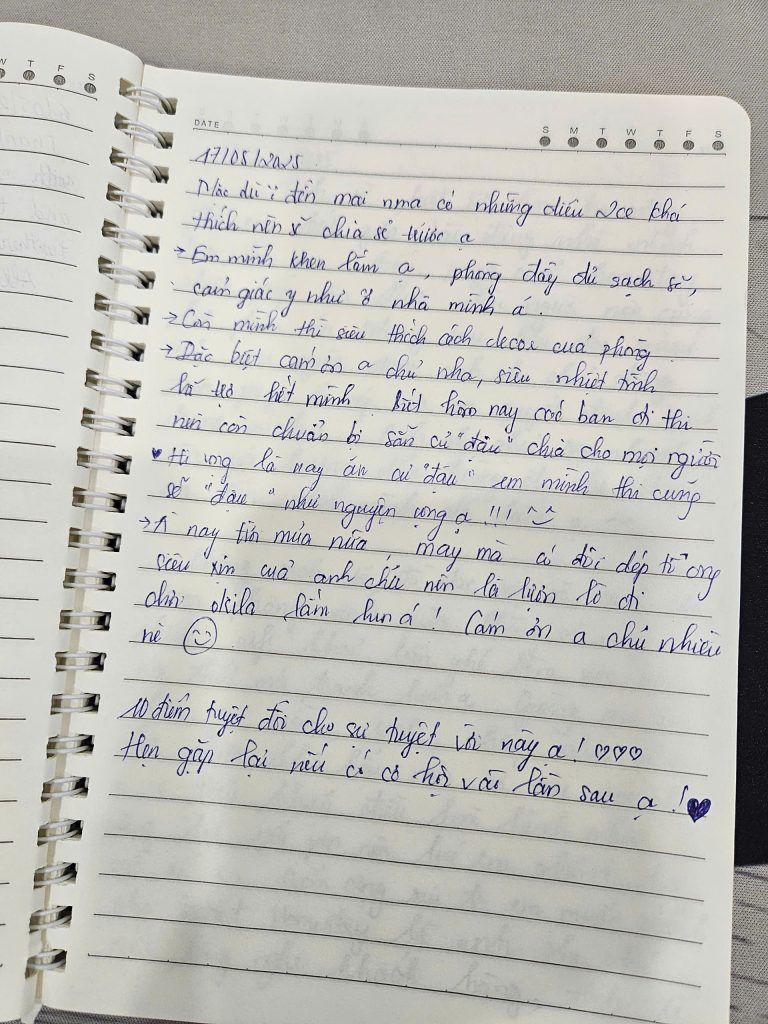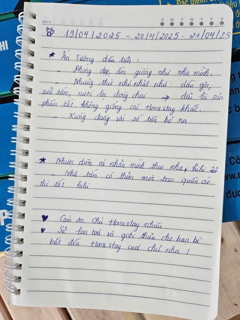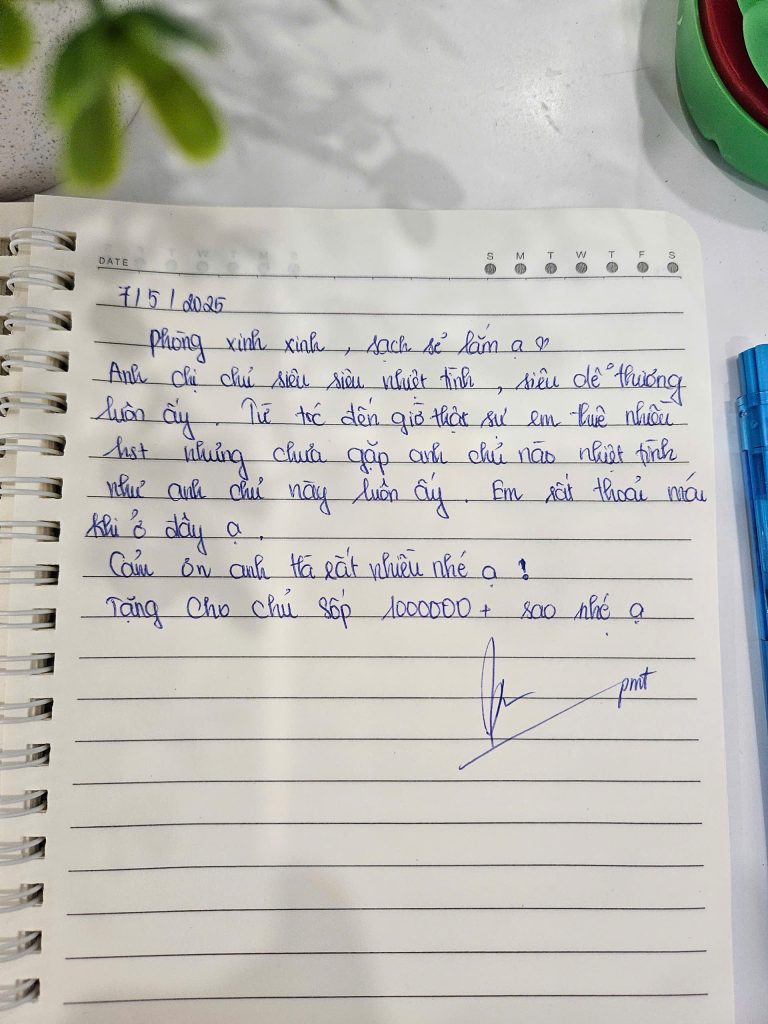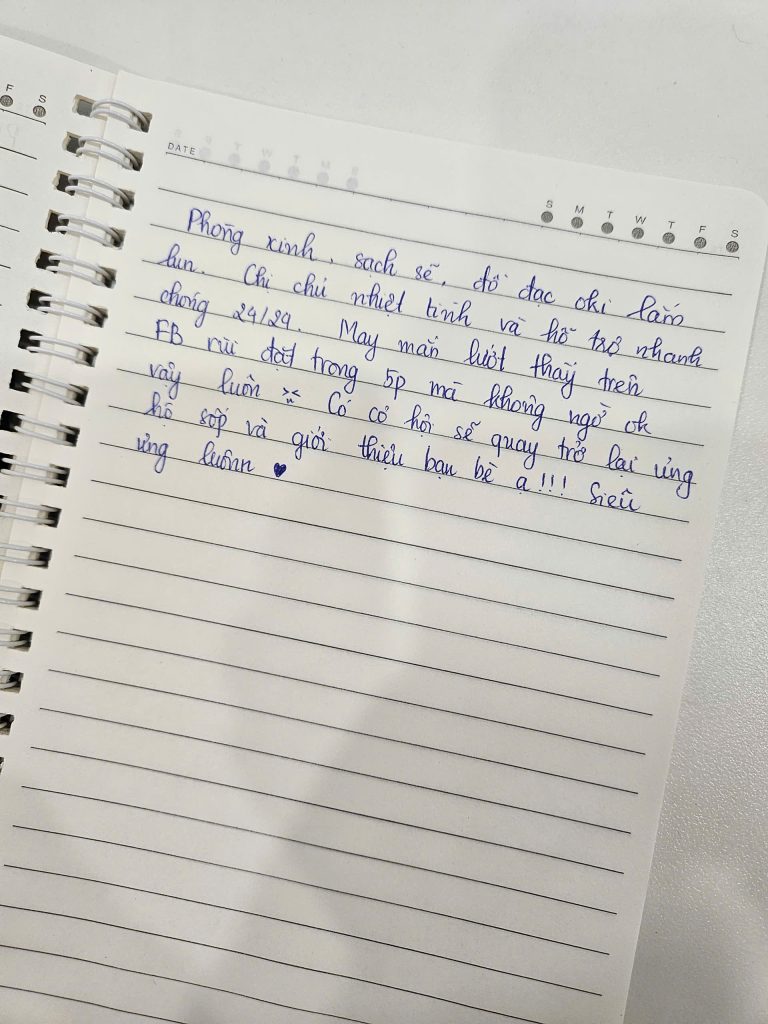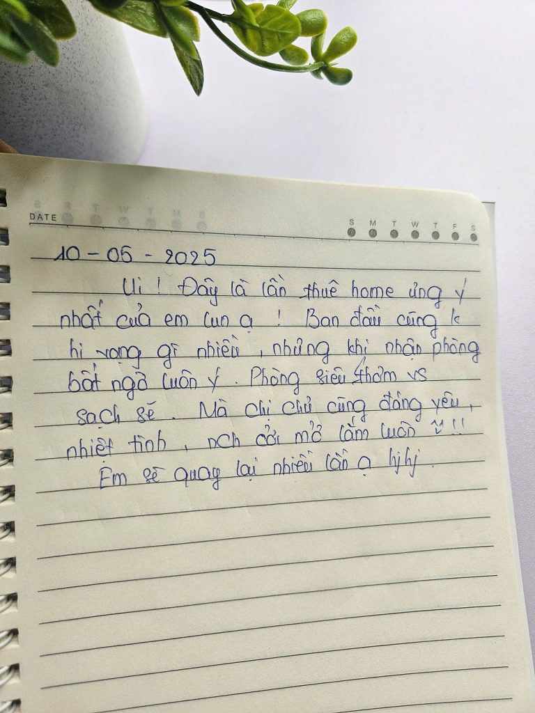 Mình biết để được một người nán lại và nắn nót viết từng dòng như thế này là không hề dễ dàng. Điều đó khiến team mình luôn cố gắng đễ mãi mãi giữ phong độ, giữ sự chỉn chu để lần nào các bạn quay lại Secret Homestay cũng sẽ là một lần “wow”. 🥰
